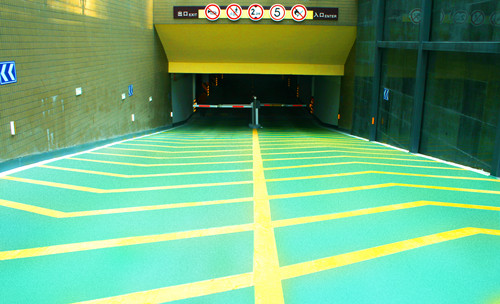 環(huán)氧樹脂防滑地坪特別適用于停車場及坡道,路橋,人行道,游泳池畔,汽修場,車庫及大型停車場地面。