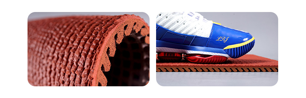l安全: 獨特的表面凸紋和底部凹巢設計提供了合適的沖擊吸收和能量回送系統(tǒng),這在有效提高運動成績的同時也保證了運動的安全性。