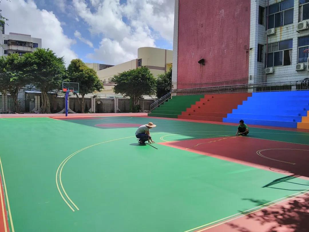 3月6日,籃球場翻新改造項目正式動工,工作人員拆除原有的水泥地面,鋪設(shè)塑膠地面,更換防撞地墊;鏟除觀看臺側(cè)面墻磚,并重新貼磚噴涂......除了地面的升級外,球場圍界立柱預(yù)留的燈架上,也安裝上照明設(shè)施,原來的水泥籃球場成為標(biāo)準(zhǔn)燈光球場,方便晚上的社區(qū)居民運動。