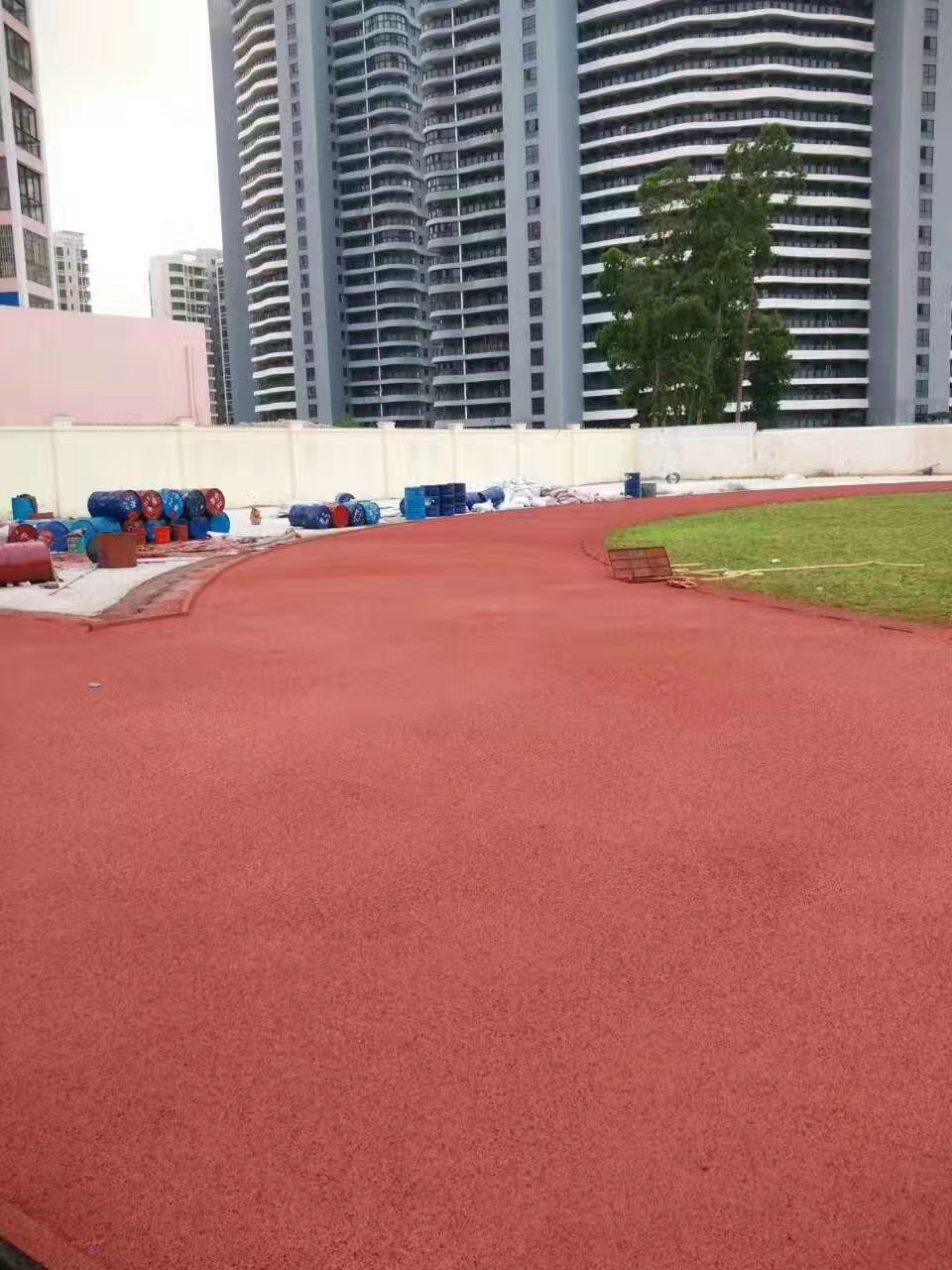 塑膠跑道原料造價(jià),鋪設(shè)塑膠跑道標(biāo)準(zhǔn)方案,聚氨酯塑膠資料的施工過程中最怕水、膠漿在開始固化前碰到一滴水珠就會(huì)發(fā)作一個(gè)大的氣泡,因而施工人員在高溫條件下作業(yè)要預(yù)備毛巾擦汗。鋪膠面時(shí)必定把握天氣情況并要做好避免突降陣雨的應(yīng)急辦法。鋪膠時(shí)刻要避開早晨大氣中和地上濕度較大的時(shí)分,即便在天氣晴朗的正常工作日,一般最好在上午九點(diǎn)今后正式鋪設(shè),塑膠跑道鋪設(shè)。