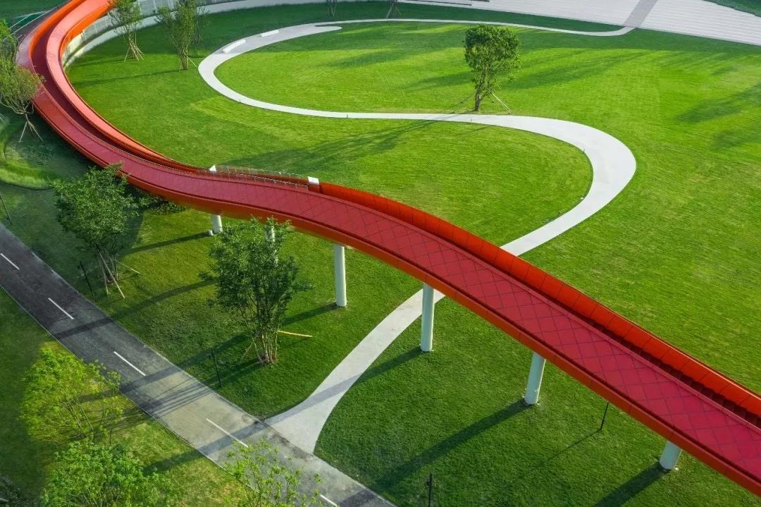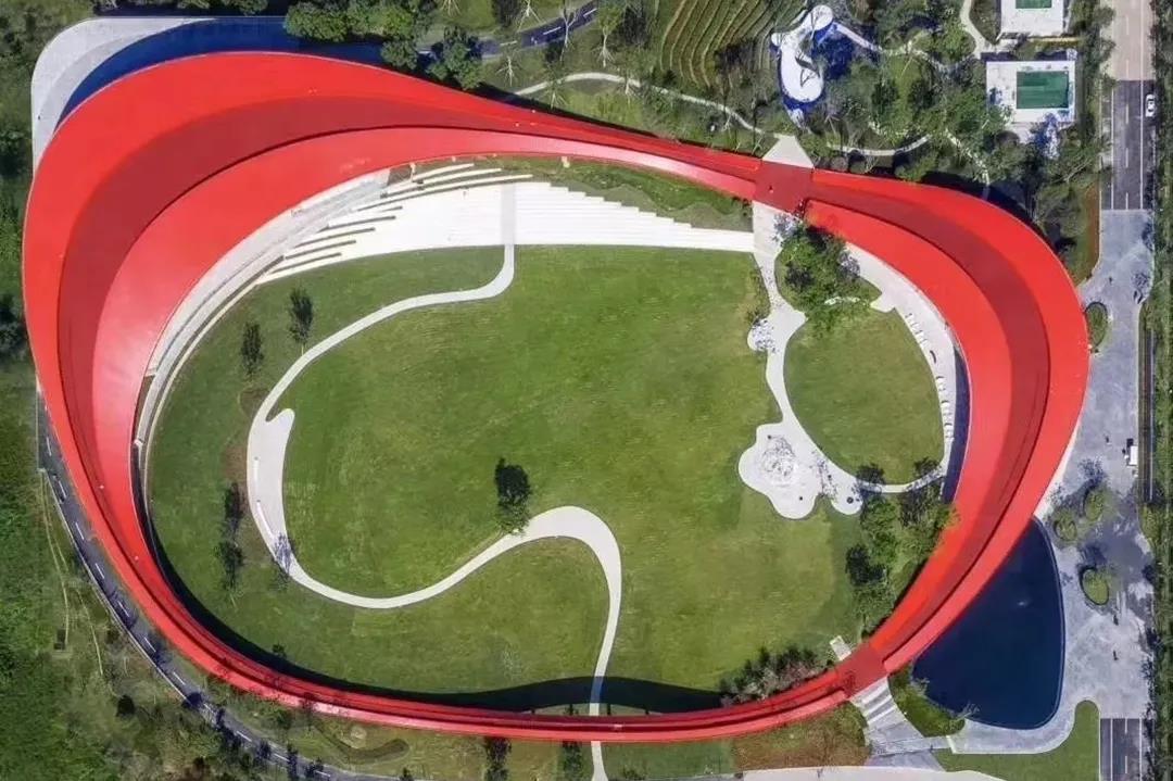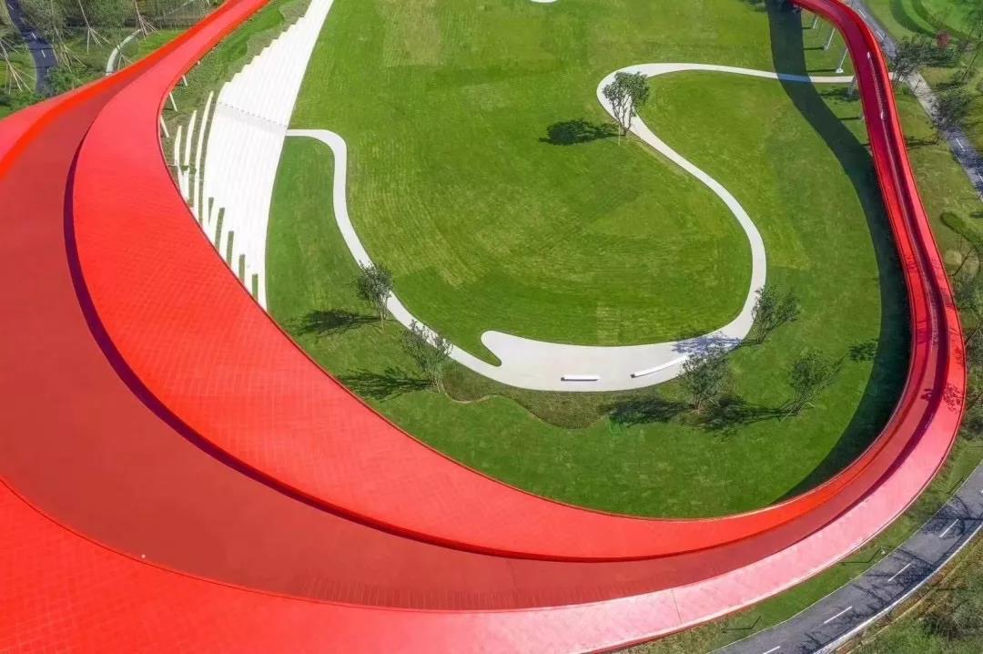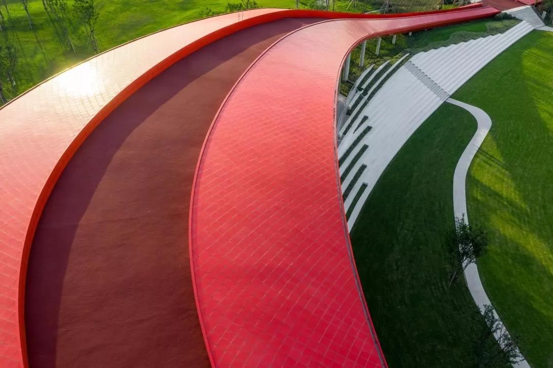 據(jù)悉,智慧之環(huán)項目由荷蘭著名Powerhouse Company 建筑設計事務所創(chuàng)始人Nanne親自操刀帶領團隊打造,項目設計的主要亮點是其紅色、可步行的曲面屋頂,它依地勢高低起伏而建,中間環(huán)繞形成一個綠意盎然的公園,凸顯了健康與美的主題。
