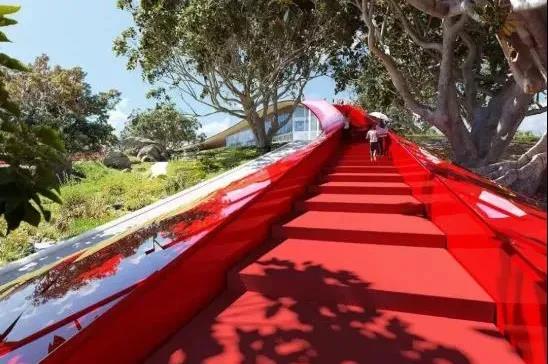 亮麗的紅色與周圍綠色植被形成鮮明對比