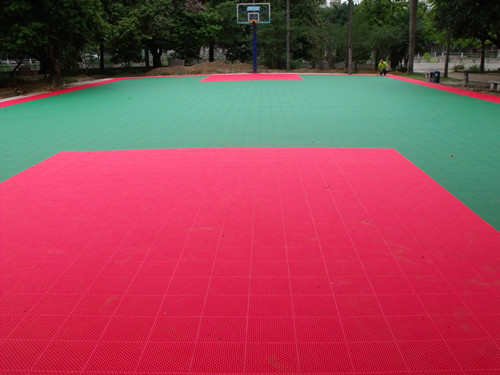 江高江高文化體育公園采用25CM X25CMX12.7的懸浮拼裝地板鋪設(shè),經(jīng)公司推薦,客戶最終選擇米字格的懸浮地板,紅綠兩色搭配鋪設(shè),該懸浮地板籃球場為優(yōu)質(zhì)懸浮地板,保質(zhì)期為8年,色彩保真3年。