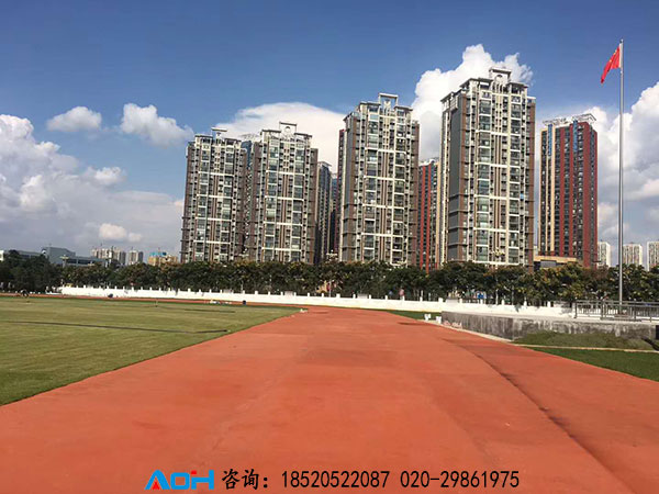 5、塑膠跑道外表美觀大方。塑膠場地利用機械精加工,塑膠表面層厚薄均勻,平整劃一;專用高彈性顆粒,表面顏色柔和,防止刺眼光線的反射,美觀持久;不會因紫外線、臭氧、酸雨的污染而褪色、粉化或軟化,并能長期保持其鮮艷的色彩,美觀耐久,并可采用多色彩搭配。