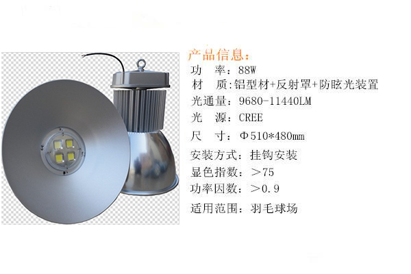 每個場配置8盞88W燈具,平均照度可達到220-250lux。